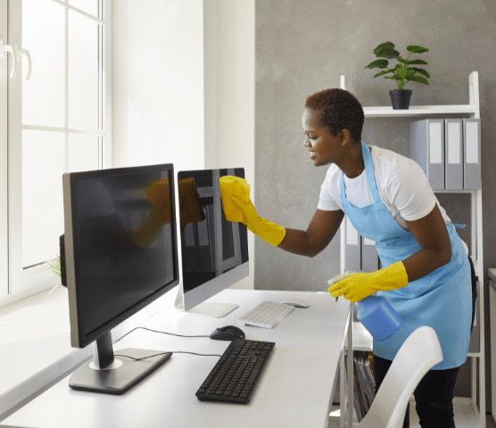 - Workstation Cleaning – Desks, keyboards, and office equipment wiped down to maintain hygiene and reduce germs.